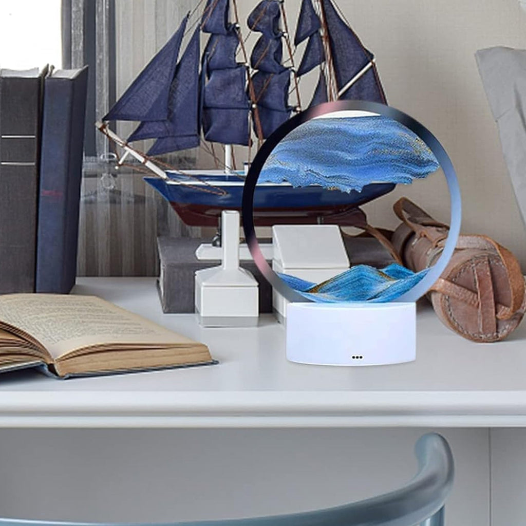 5 Color Light Moving Sand Art Picture Round Glass 3D Deep Sea Sands cape in Motion Display Flowing Sand Frame, Children's Large Desktop Art Toys, Home & Office Desktop Decorations (1 Pc)